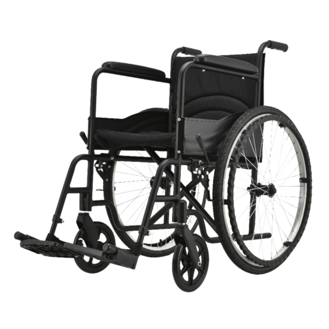 La silla de ruedas manual YHF-06 está diseñada para brindar movilidad segura y cómoda a personas con discapacidad, adultos mayores o pacientes con movilidad reducida. Fabricada en acero resistente, es plegable, ligera y fácil de transportar. Su diseño ergonómico, frenos manuales y ruedas traseras de 24” con delanteras de 8” ofrecen estabilidad y maniobrabilidad en diferentes superficies.